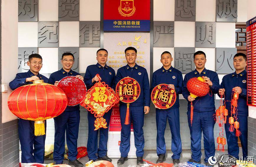平遥县古城消防站消防员准备窗花、灯笼,在战备中“点亮”年味。